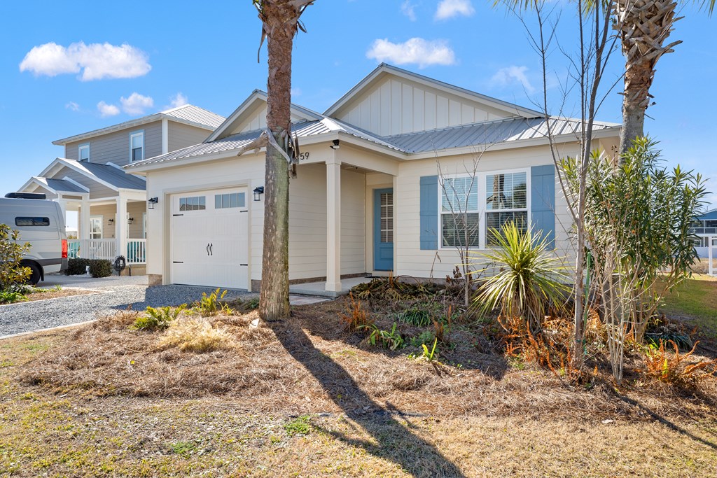 Beautiful coastal home located in the desirable Ocean Plantation community of Mexico Beach, just two blocks from the Gulf of Mexico. This 3 bedroom, 2 bathroom home offers the perfect opportunity for a primary residence, second home, or investment property. Short-term rentals are allowed, providing excellent income potential in this sought-after beachside location. The home features an open-concept floor plan with a spacious living and dining area, ideal for entertaining. The kitchen offers granite countertops, white cabinetry, stainless steel appliances, and a large island with bar seating. Durable coastal-friendly flooring runs throughout the main living areas. The primary suite includes a double vanity with granite countertops and modern fixtures. Additional bedrooms provide comfortable space for guests or renters. Exterior features include a metal roof for coastal durability, covered front entry, garage, and a rear deck perfect for relaxing or outdoor dining. The low-maintenance yard makes ownership easy whether used as a full-time residence or rental property. Ocean Plantation is a newer coastal community offering convenient golf cart or walking access to the beach, making this home highly attractive to vacation renters and beach lovers alike. Don't miss this opportunity to own a move-in-ready home in one of Mexico Beach's most desirable neighborhoods.